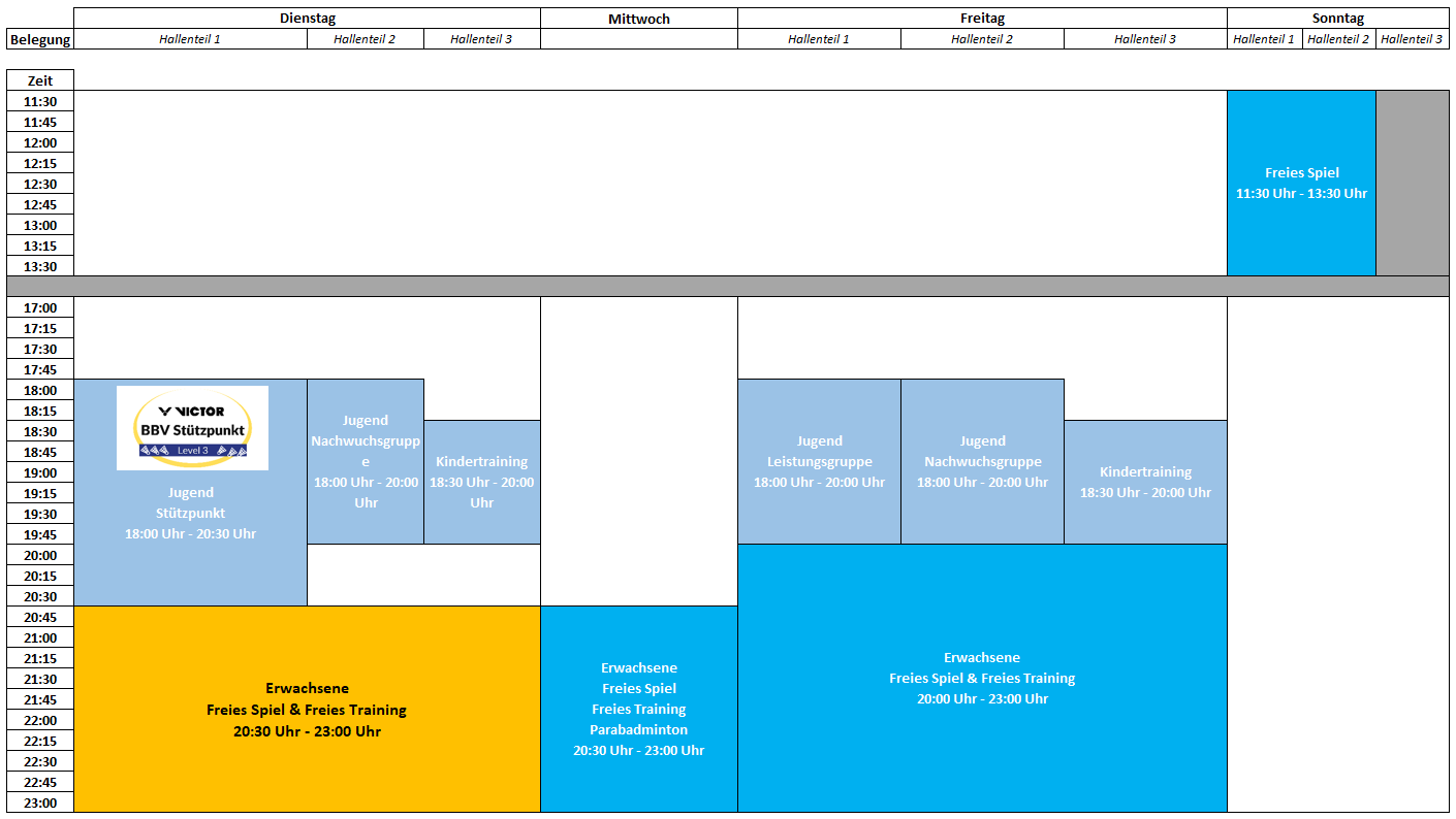 Unten angezeigt ist der offizielle Hallenbelegungsplan gemäß ESV Hauptverein.